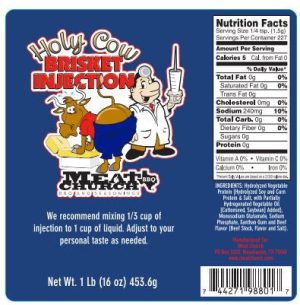 The Meat Church Holy Cow Brisket?Injection is a tasty recipe that will drive maximum flavor and moisture into your BBQ brisket! We know Texas and we know brisket. Also. take it from us. this brisket injection recipe has been hitting all over the country. It has lead to countless 1st place brisket calls.