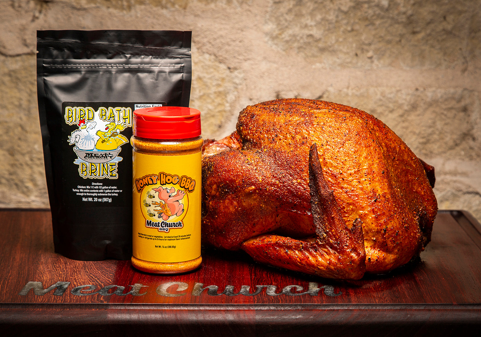 All you need for the perfect turkey this Holiday season! Our Bird?Baptism Brine adds moisture and flavor to your turkey and goes great when?combined with our famous Honey Hog BBQ rub.?